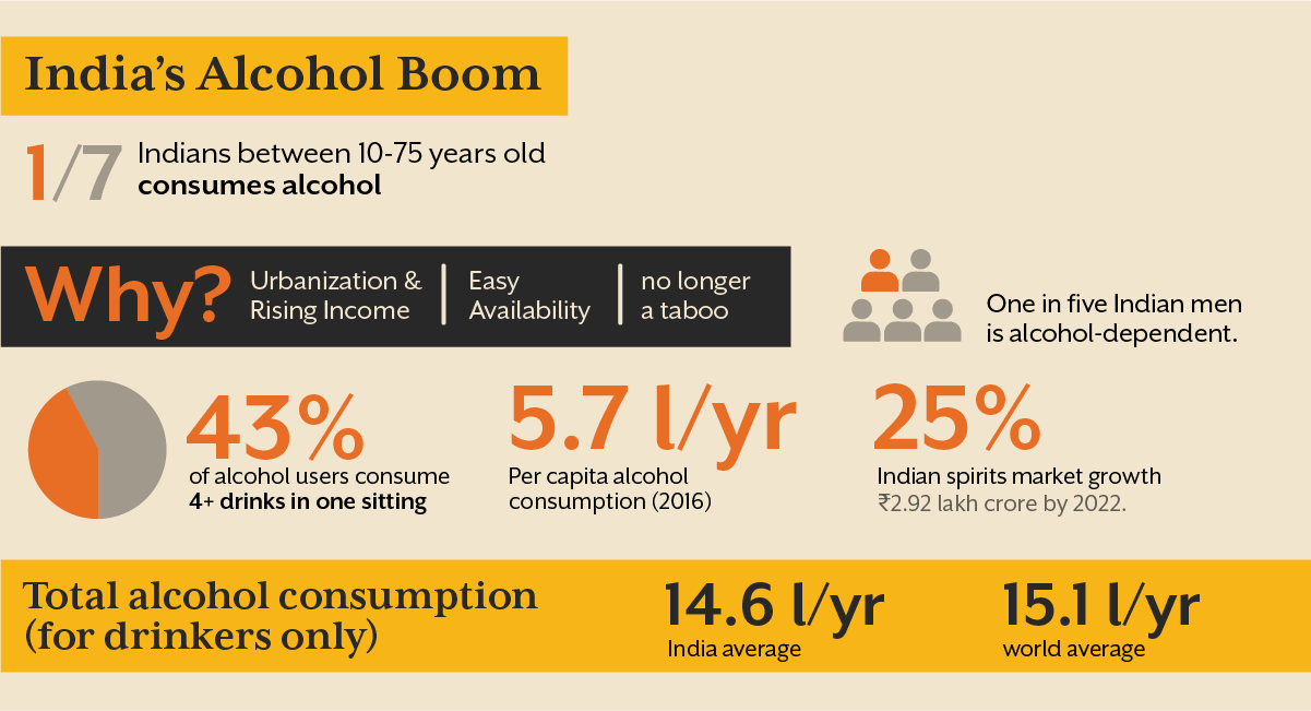 A 2019 government survey found that one in seven Indians between 10-75 years old consumes alcohol- a number that keeps growing. The reasons? 2
