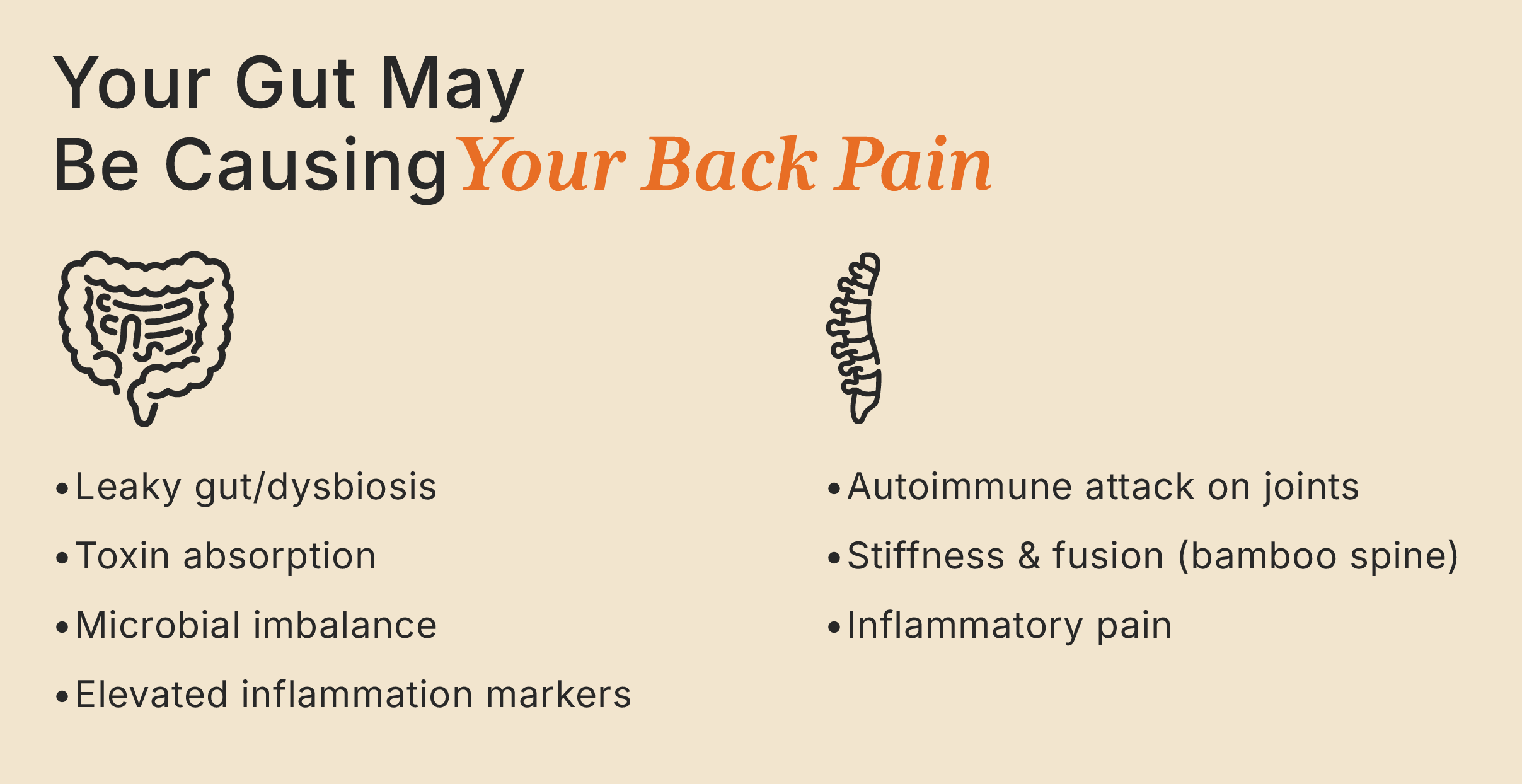 If your gut lining is compromised, the immune system begins to react and can shift focus onto joints and spine structures.