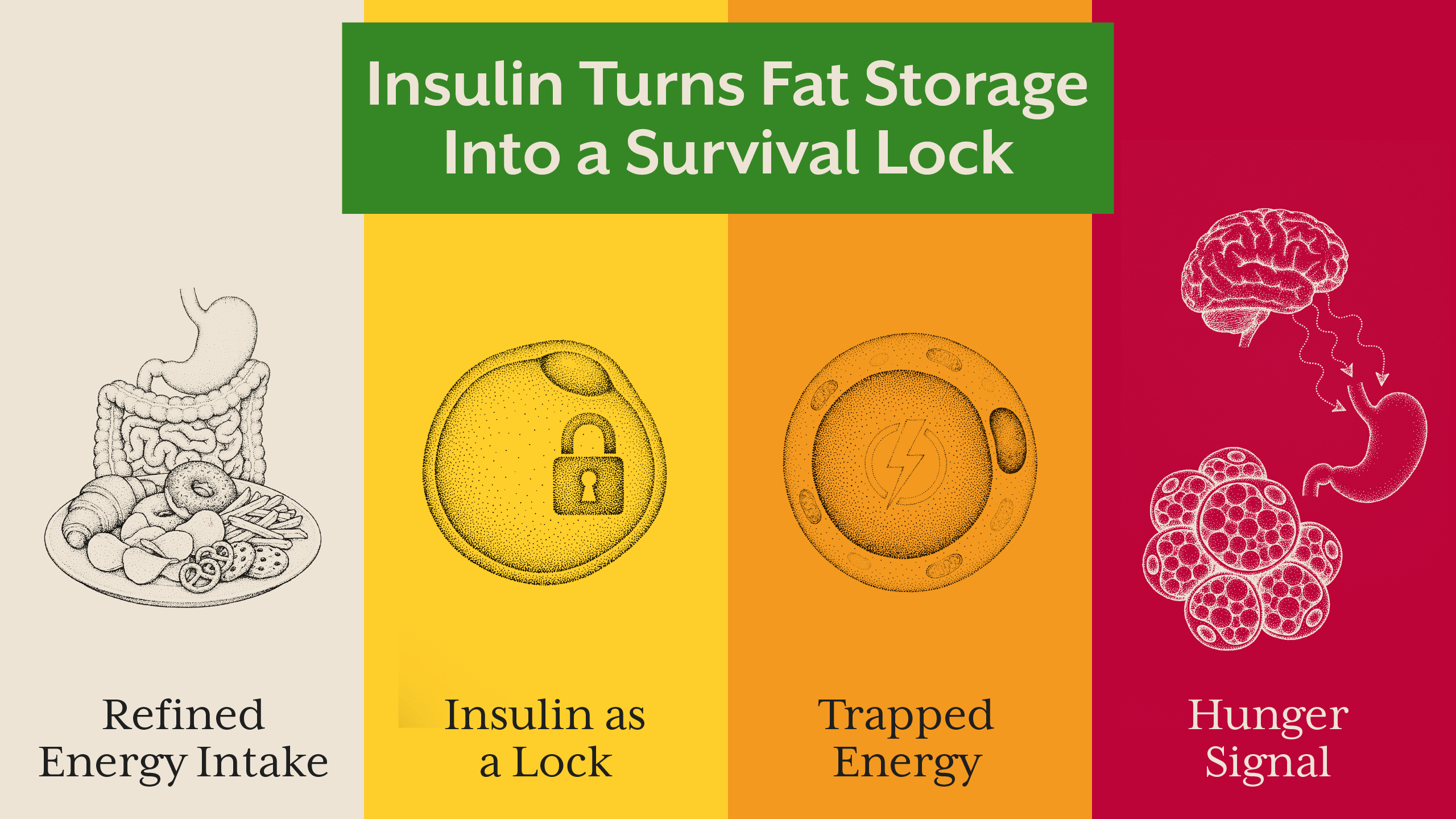Willpower assumes conscious control. Obesity science shows that most eating behavior is hormonally driven. Insulin, leptin, ghrelin, cortisol, and dopamine shape hunger, cravings, and satiety long before conscious thought enters the picture.