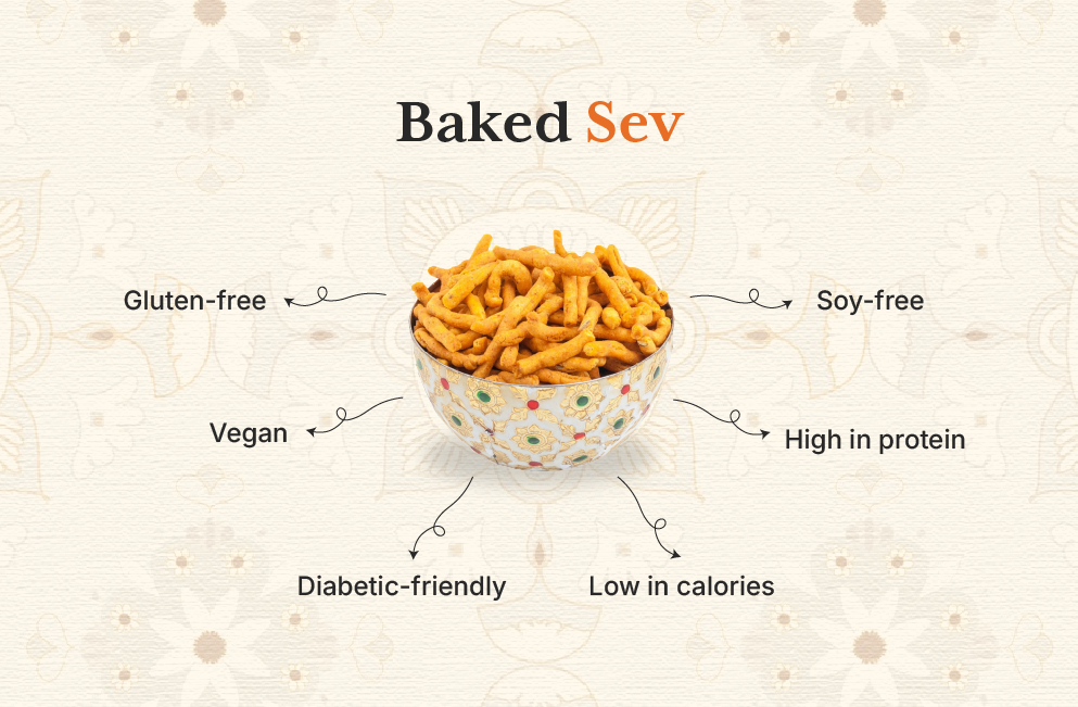 Diwali is all about celebration, but that doesn’t mean you have to compromise on health! Baked Sev is a fantastic healthy Diwali snack to traditional deep-fried Sev, offering a delicious crunch without guilt. Here’s why you should consider it: