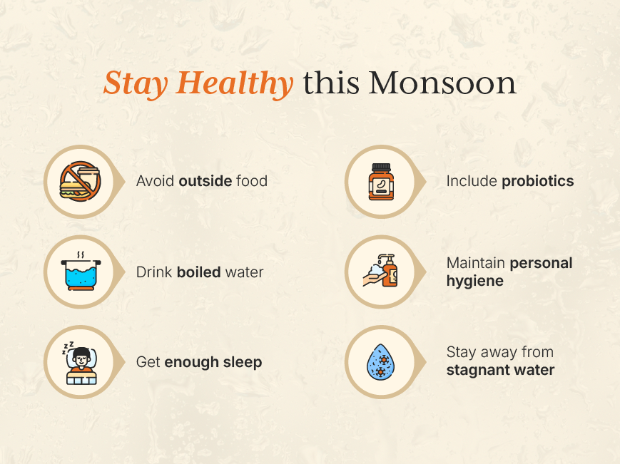 Since this season is favorable for the growth of microbes, it results in contamination of food and water. Consumption of heavy foods slows down the metabolic action of the stomach causing troubles like gastric or gut discomfort. Chaat and other local foods from the streets might lead to stomach infections due to the presence of microorganisms in the raw materials used. Hence, it is crucial to build up your immunity during the season.