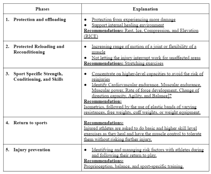Phase 2: Rehabilitation progresses during the second phase of recovery. This may be a slow process, but following the nutrition goals for this phase can help you recover and return to sports participation.